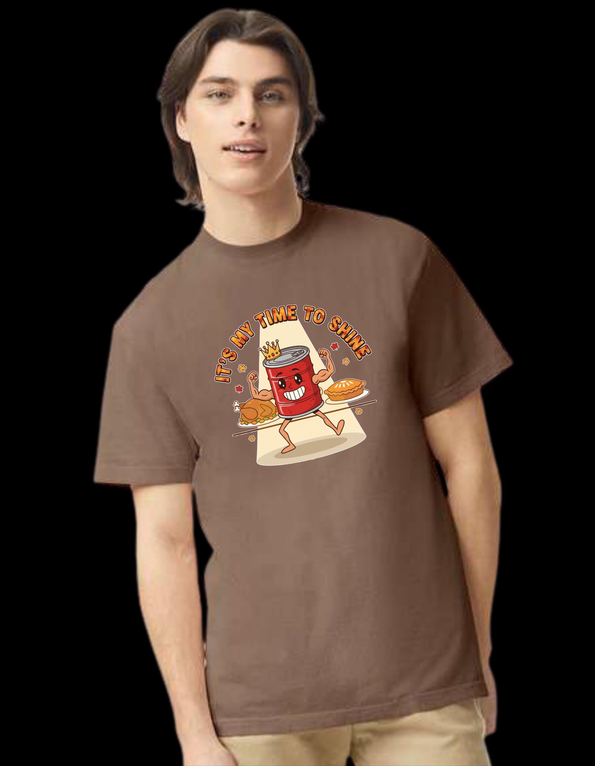 It's My Time To Shine Funny Thanksgiving T-Shirt. T-shirts used are comfort color T-shirts, 100% ring-spun cotton, preshrunk, and soft-washed. These are a heavy shirt but still very comfortable. Perfect for any holiday gathering.