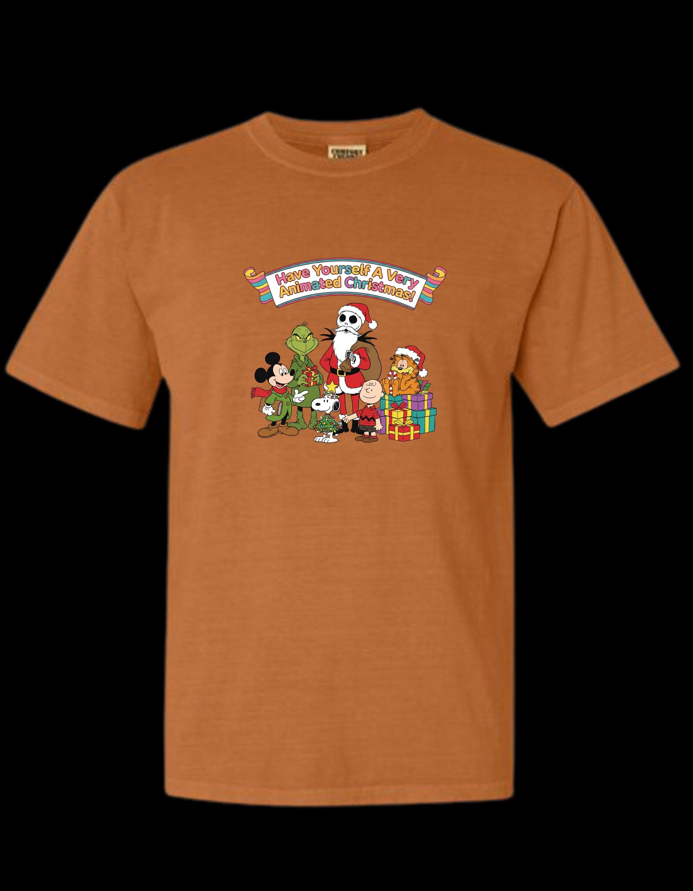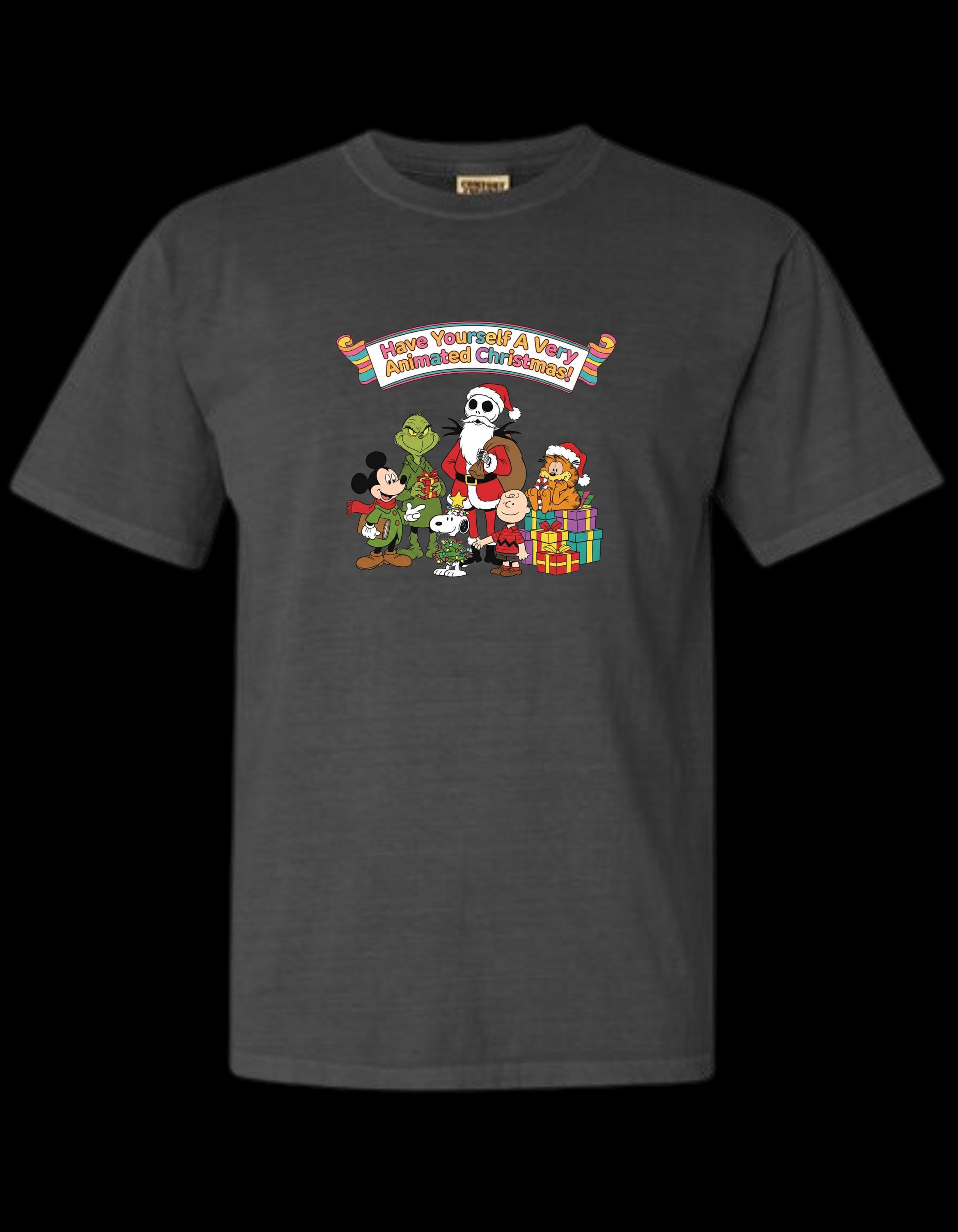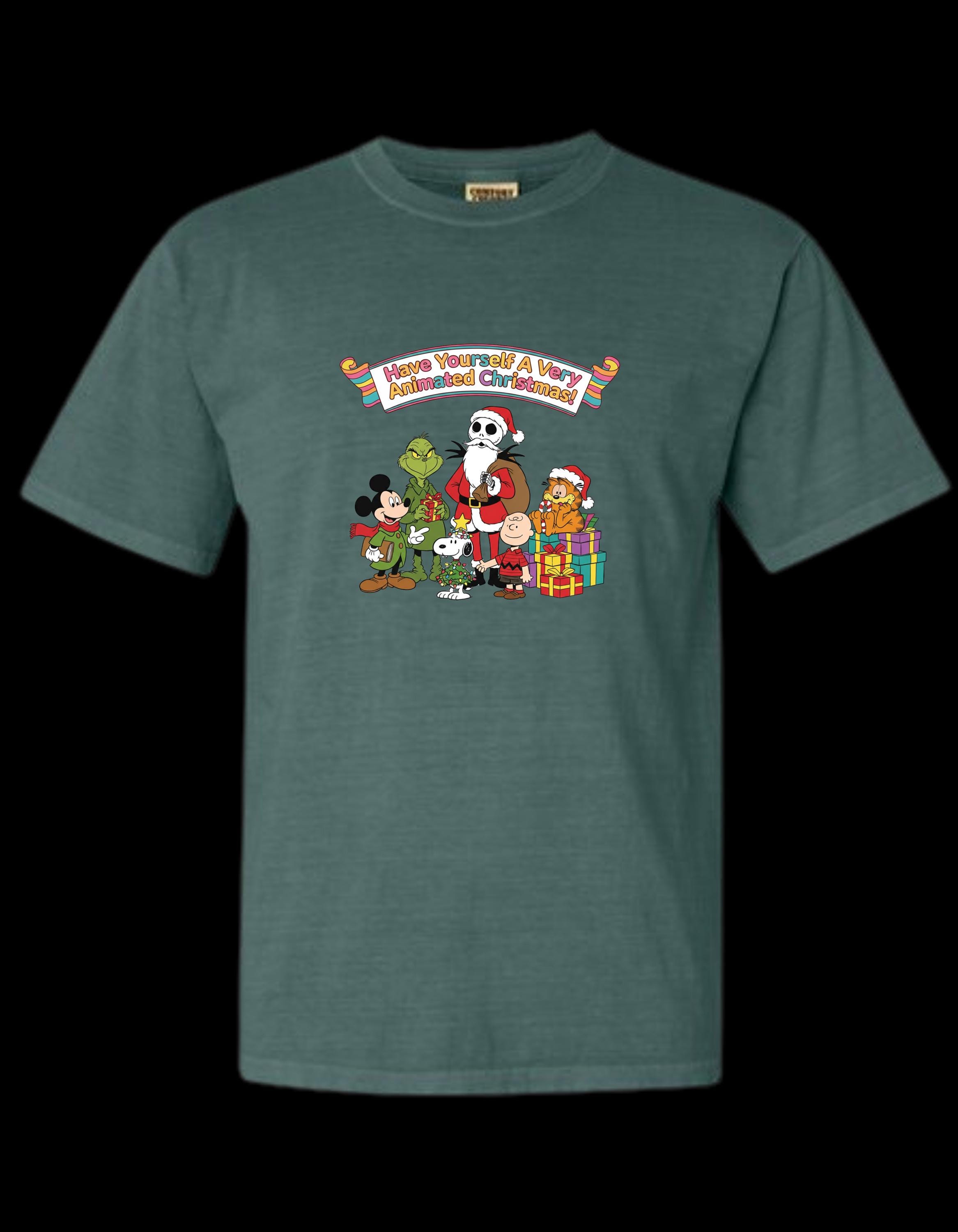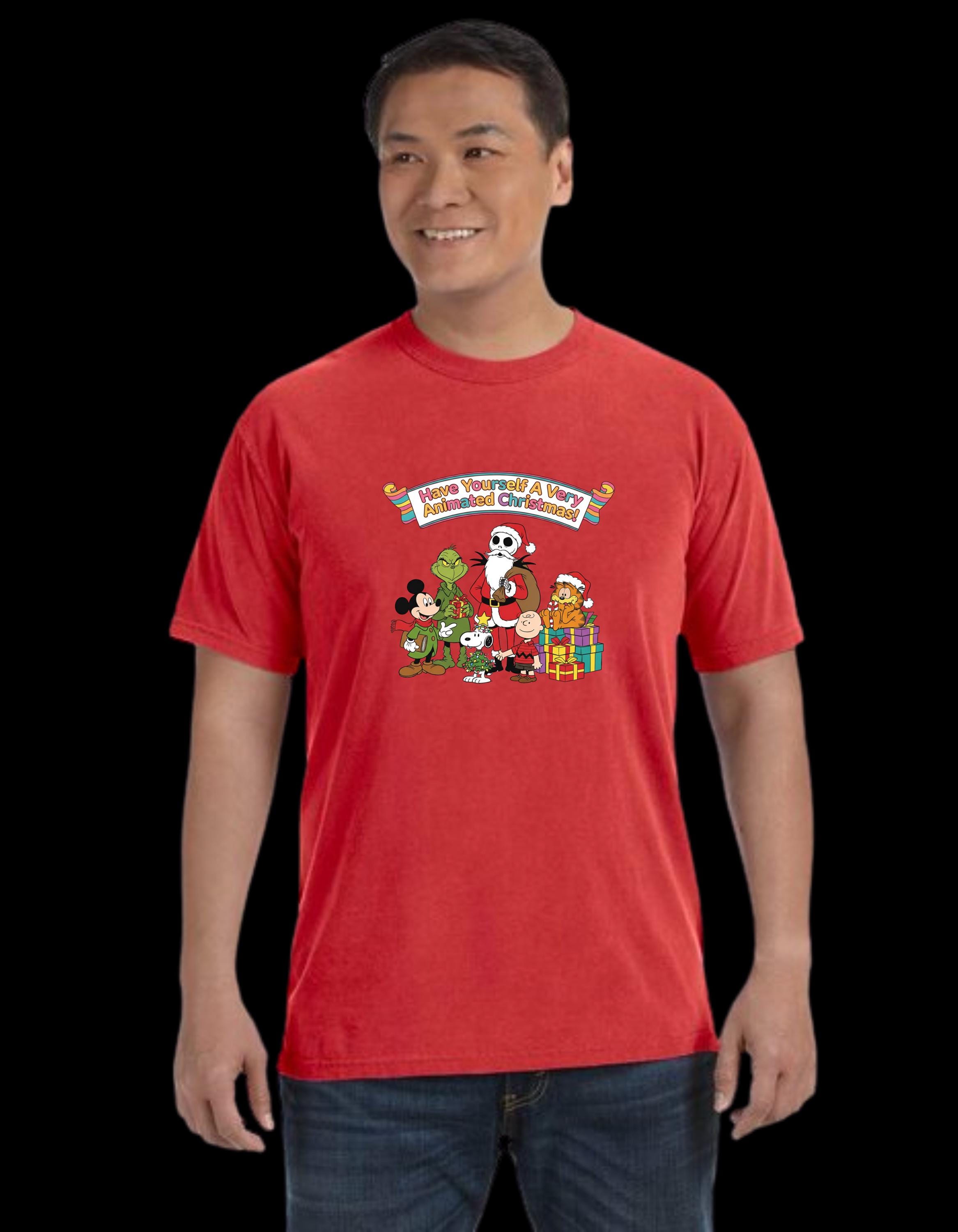 Have Yourself a Very Animated Christmas T-Shirt. T-shirts used are comfort color T-shirts, 100% ring-spun cotton, preshrunk, and soft-washed. These are a heavy shirt but still very comfortable. Perfect for any holiday gathering.